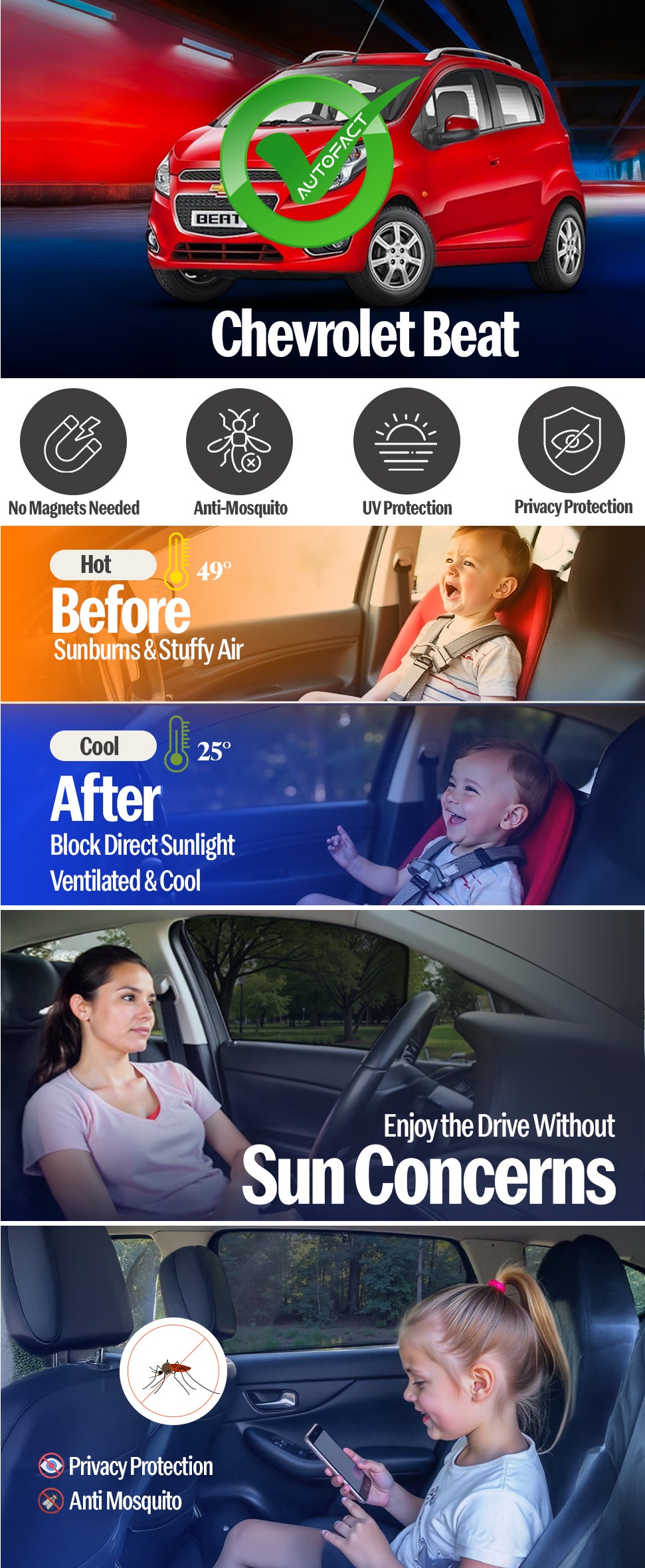 Give your Chevrolet Beat the comfort and protection it deserves. Autofact custom-fit sunshades are engineered using advanced CAD CAM precision cutting, ensuring an exact factory-level fit for Beat. No loose fitting, no sagging — just clean, seamless coverage.