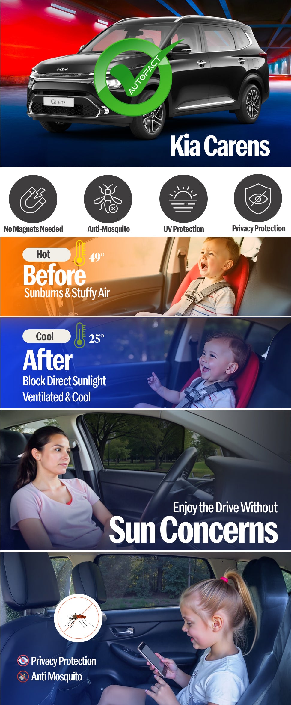 Give your Kia Carens the comfort and protection it deserves. Autofact custom-fit sunshades are engineered using advanced CAD CAM precision cutting, ensuring an exact factory-level fit for Carens. No loose fitting, no sagging — just clean, seamless coverage.