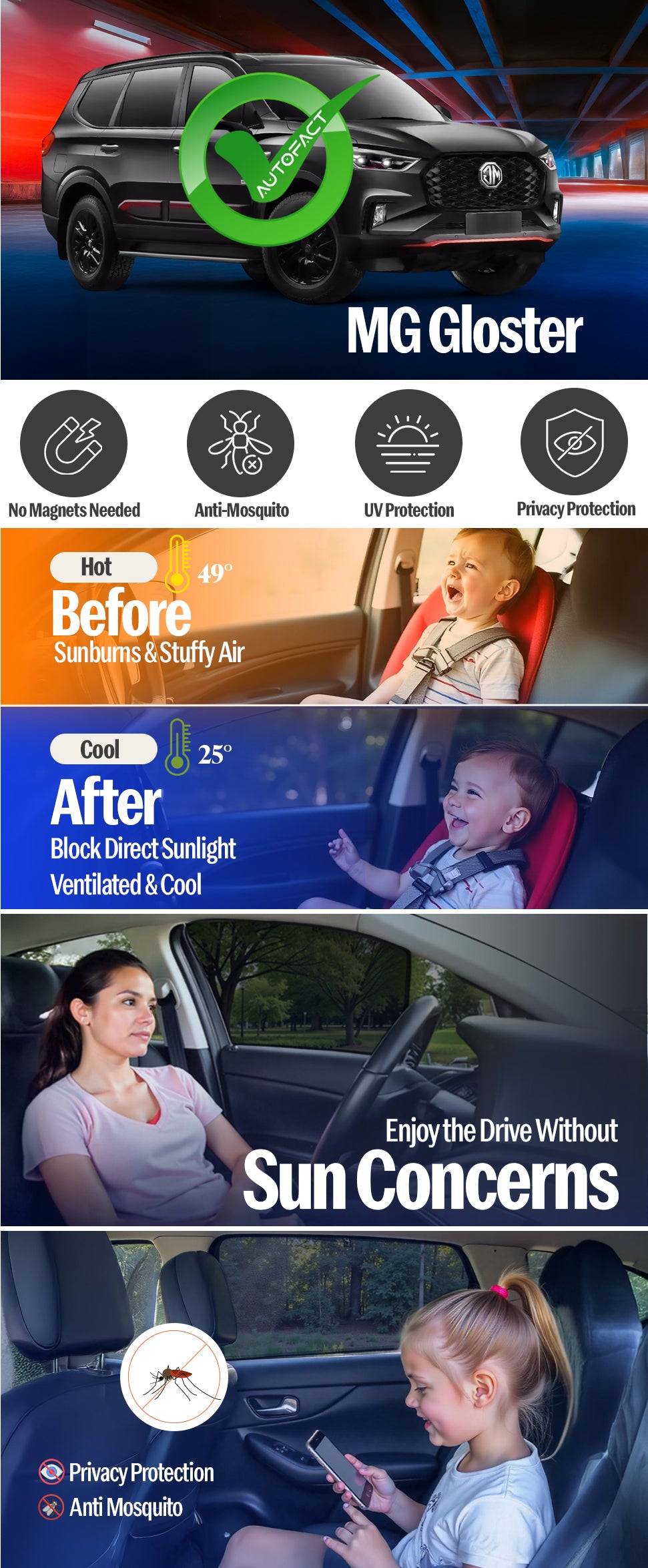 Give your MG Gloster the comfort and protection it deserves. Autofact custom-fit sunshades are engineered using advanced CAD CAM precision cutting, ensuring an exact factory-level fit for Gloster. No loose fitting, no sagging — just clean, seamless coverage.
