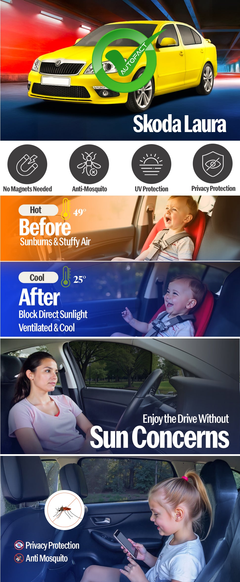 Give your Skoda Laura the comfort and protection it deserves. Autofact custom-fit sunshades are engineered using advanced CAD CAM precision cutting, ensuring an exact factory-level fit for Laura. No loose fitting, no sagging — just clean, seamless coverage.