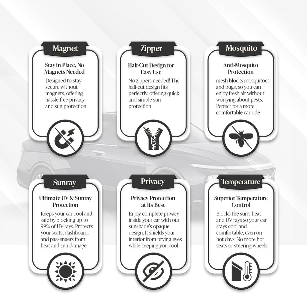 Made from premium breathable cotton mesh, these sunshades block up to 95% harmful UV rays, keeping your car cooler and safeguarding seats, dashboards, and electronics from sun damage.