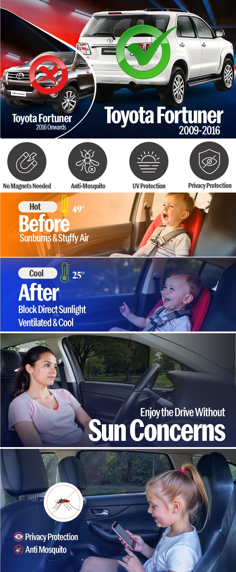 Vehicle-Specific Fit: Compatible with Toyota Fortuner 2009–2016 models.