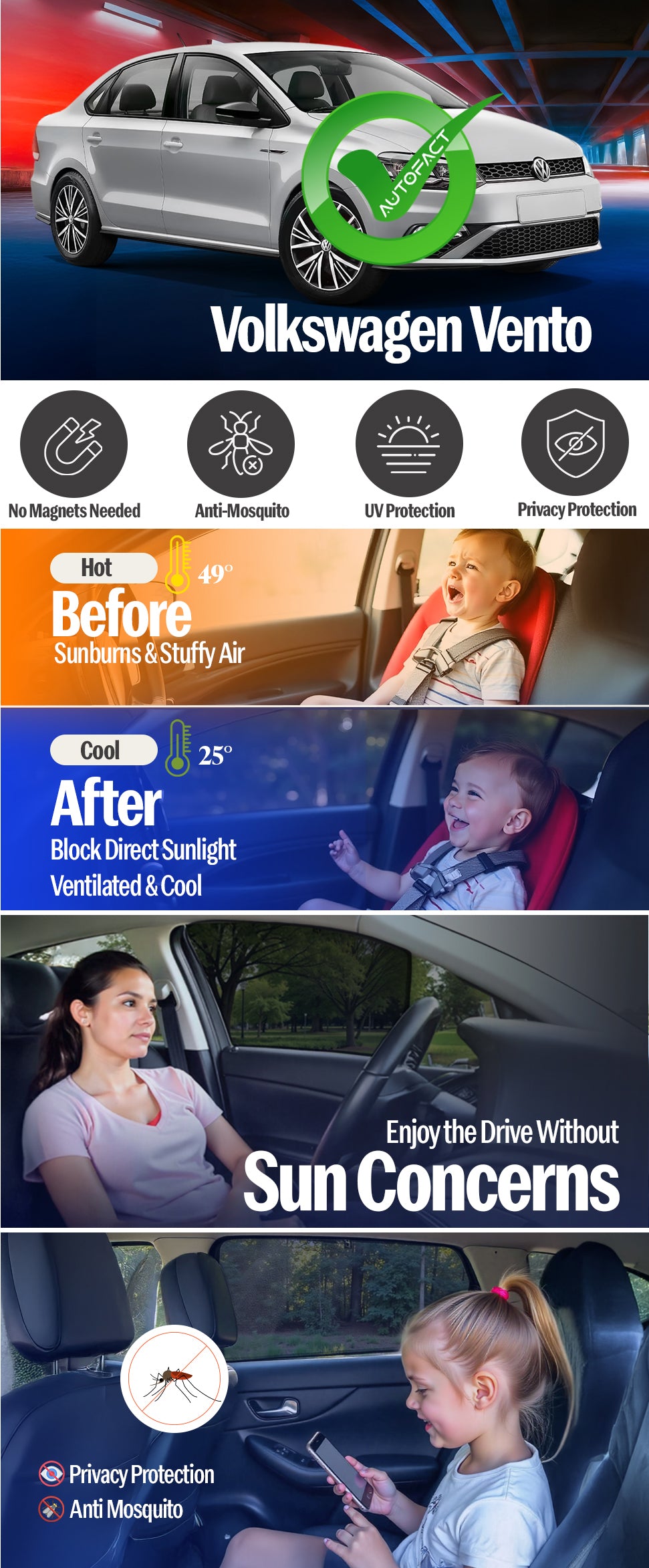 Give your Volkswagen Vento the comfort and protection it deserves. Autofact custom-fit sunshades are engineered using advanced CAD CAM precision cutting, ensuring an exact factory-level fit for Vento. No loose fitting, no sagging — just clean, seamless coverage.