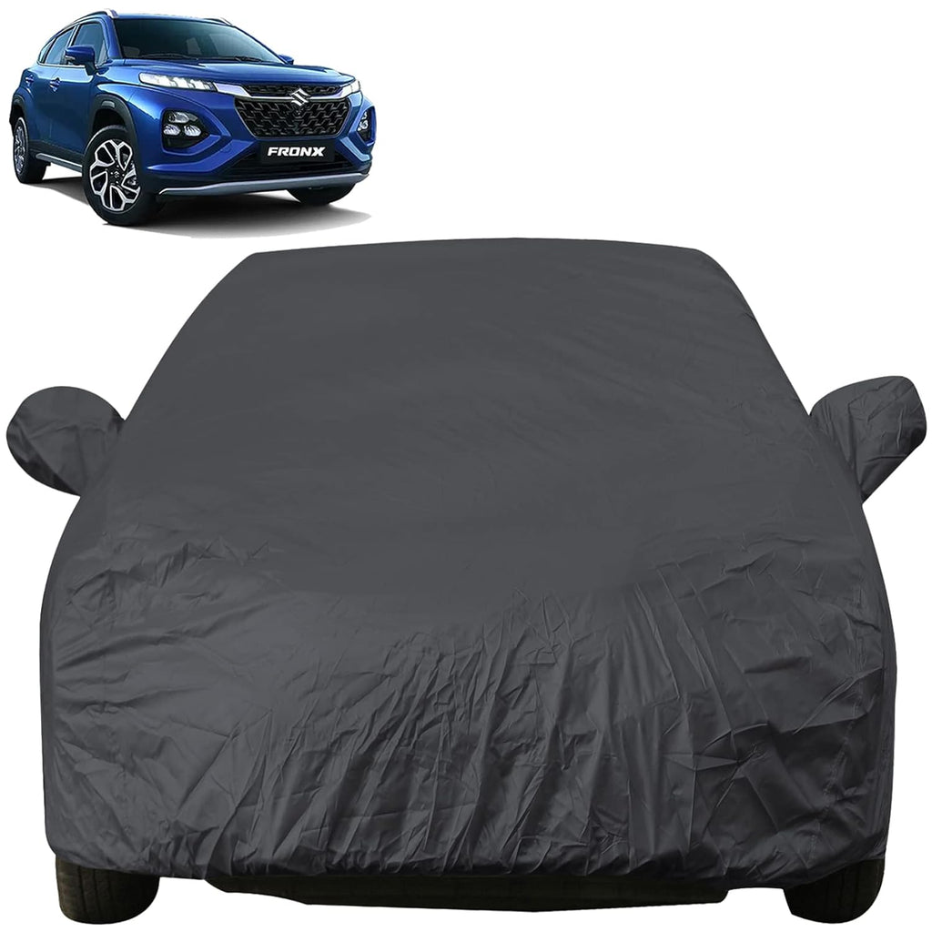 Mirror pockets ensure a snug fit for your Fronx. The bottom is fully elastic, so the cover stays tight even in windy conditions. An adjustable belt and buckle secure the cover in place. You can cover or remove it without trouble. Fronx Car Cover Waterproof works in sun, rain, and dust to protect your car.